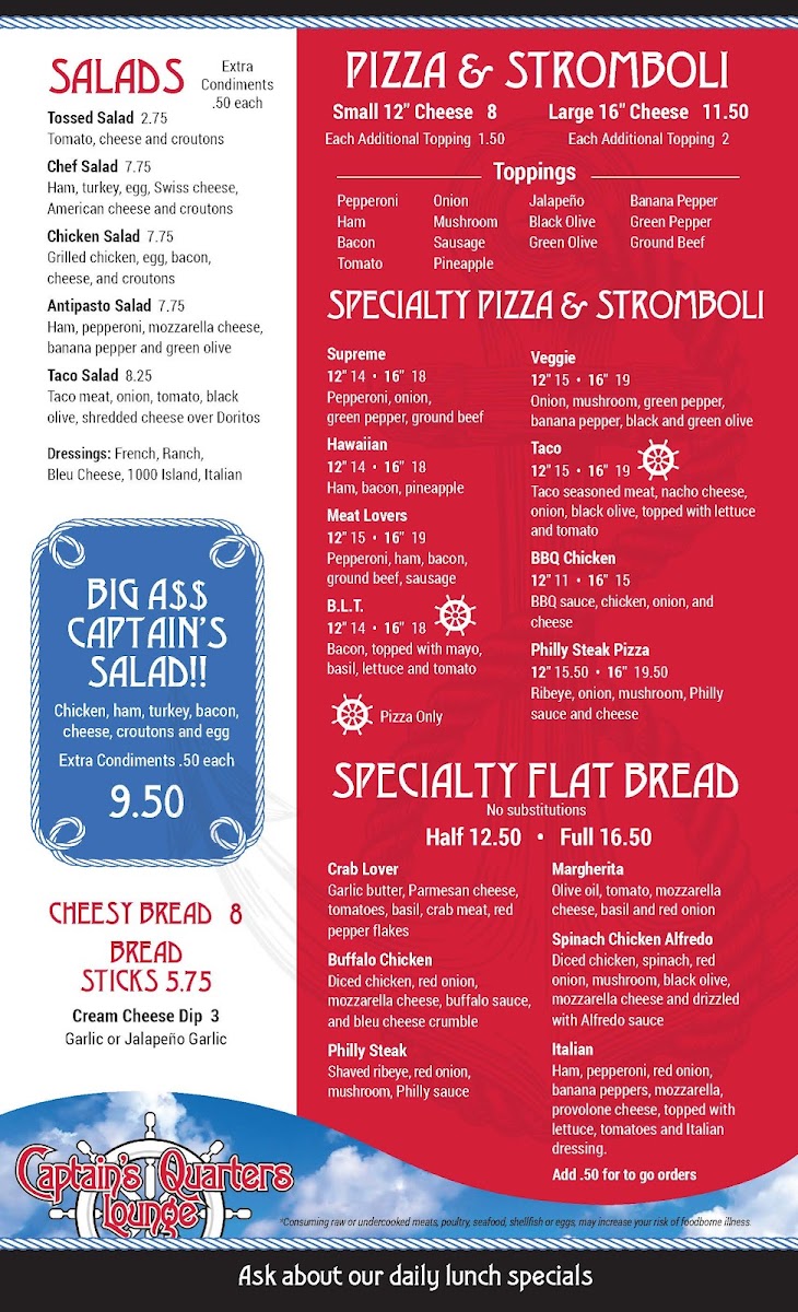 Welcome to Captain's Quarters Lounge, a vibrant dining destination situated at 6011 E Atherton Rd, Burton, MI. Known for its friendly atmosphere and excellent service, this neighborhood bar delivers a delightful menu that's perfect for any occasion.
